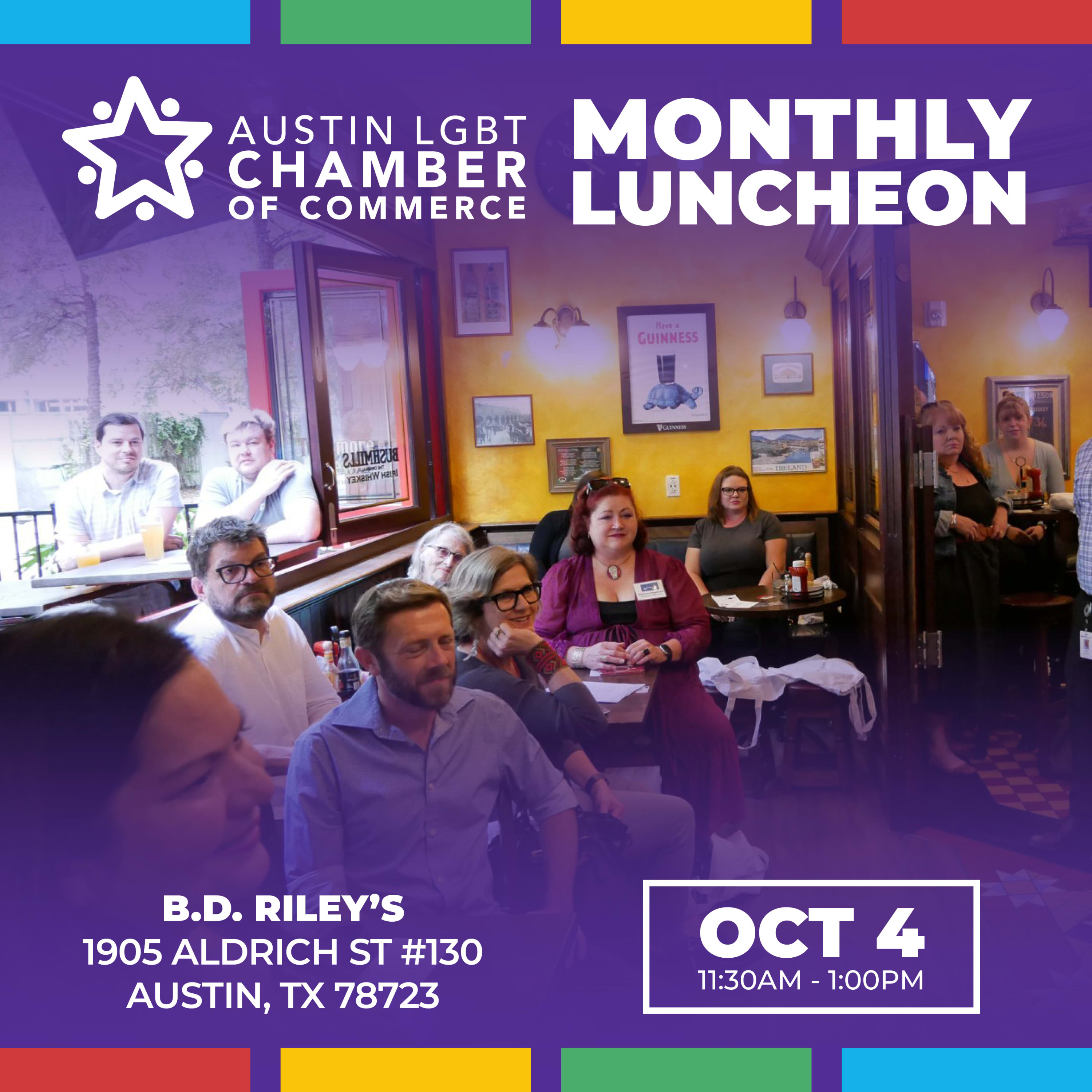 Join us at B.D. Riley's on October 4th! Speaker information coming soon. Come support a member business, network with other chamber members, and enjoy some great food